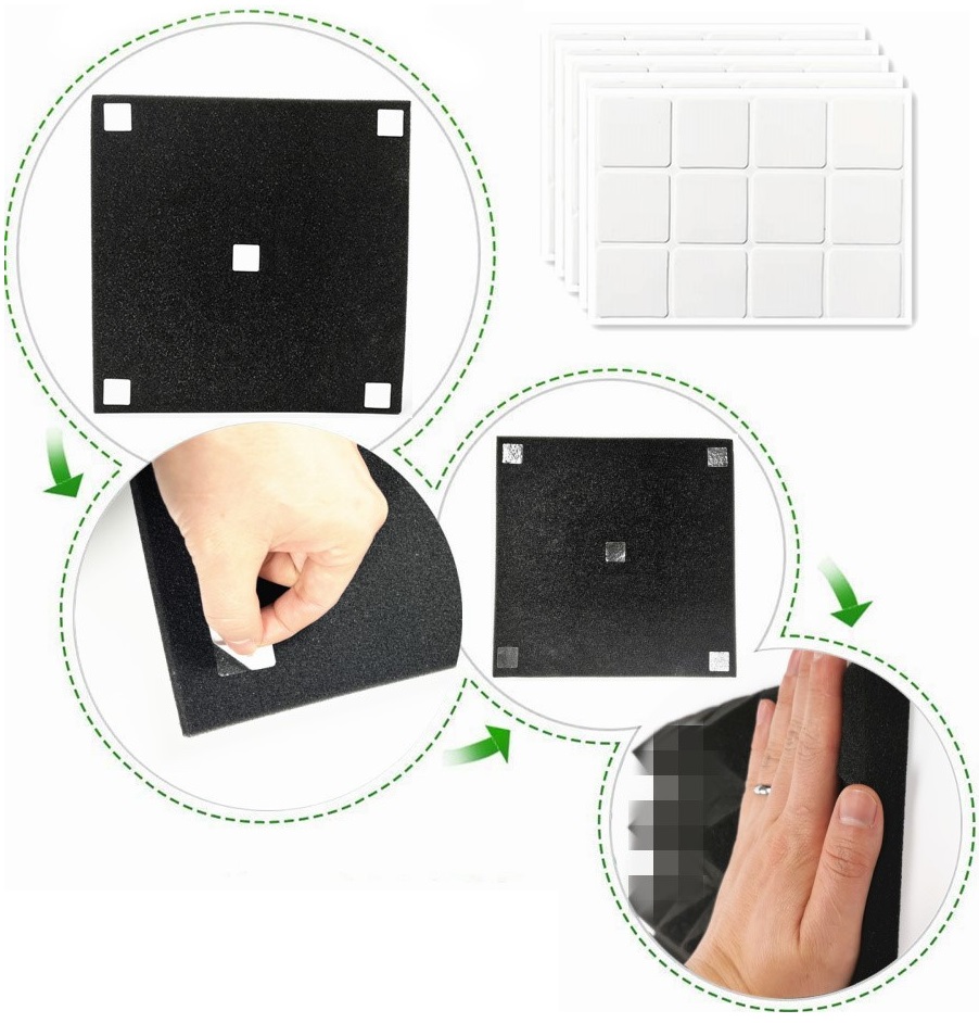 2. Przykleić plastry z tyłu pianki, na rogach jak i na środku każdego panelu,