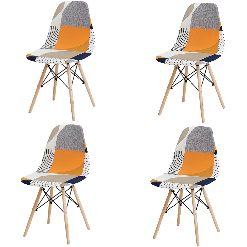 ZESTAW CZTERECH ELASTYCZNYCH JEDNOCZĘŚCIOWYCH POKROWCÓW NA KRZESŁO SKANDYNAWSKIE POMARAŃCZOWO-SZARE