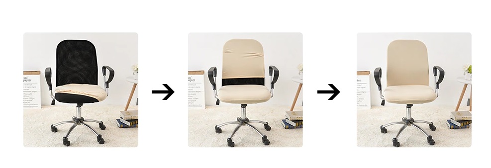 Pokrowiec NIE JEST zapinany na zamek błyskawiczny. Naciąga się go na krzesło, a gumy na brzegach sprawiają, że pokrowiec pozostaje na swoim miejscu.