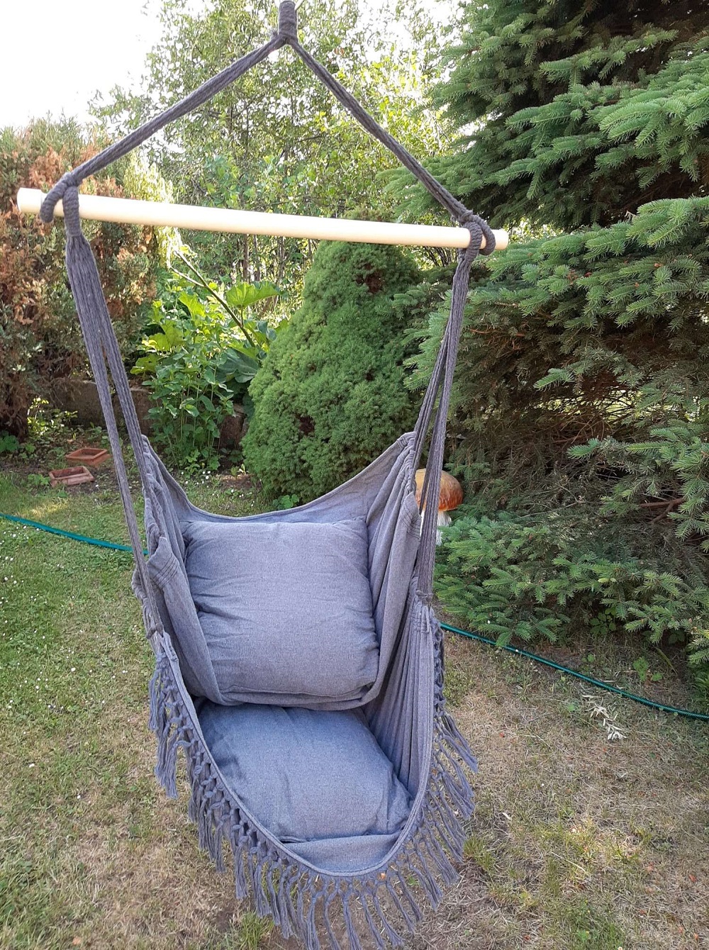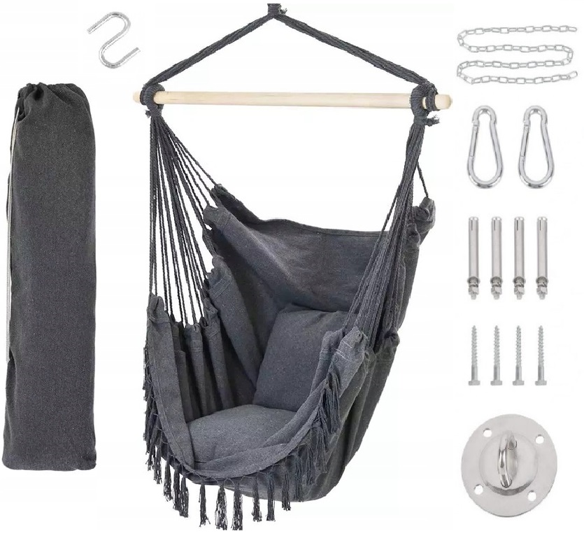 - Łatwy i prosty montaż – w zestawie znajdują się także wszystkie potrzebne szekle, śruby oraz łańcuch do zamocowania wiszącego krzesla np. do sufitu,