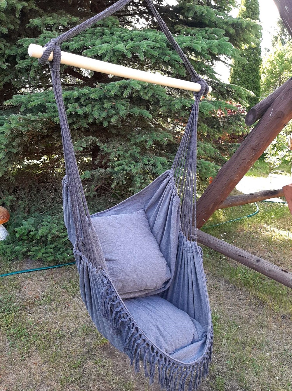 - Drewniana rozpurka zapewnia mocny chwyt hamaka oraz stylowy i schludny design,