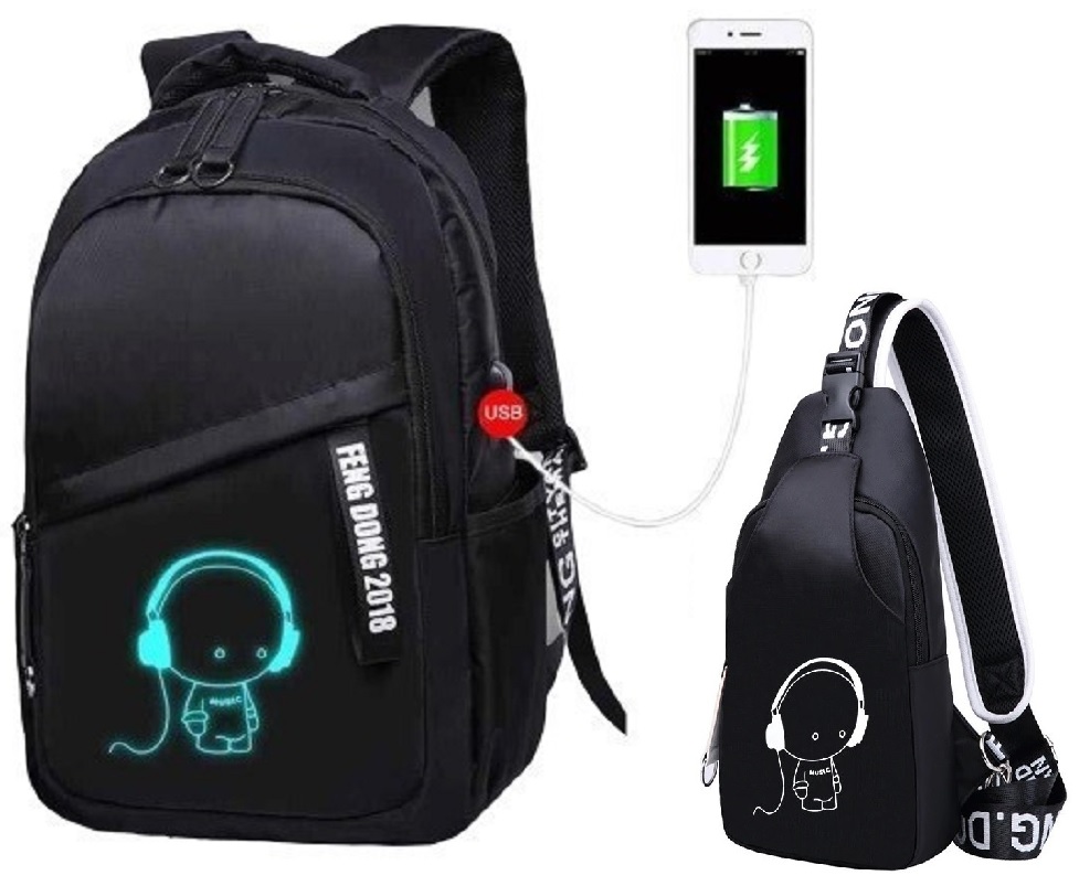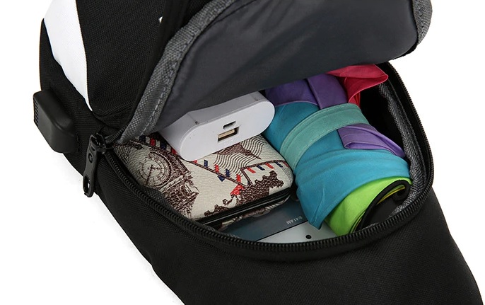 WODOODPORNY I ŚWIECĄCY W CIEMNOŚCI PLECAK Z ZEWNĘTRZNYM PORTEM USB + NERKA (PLECAK NA JEDNO RAMIĘ)