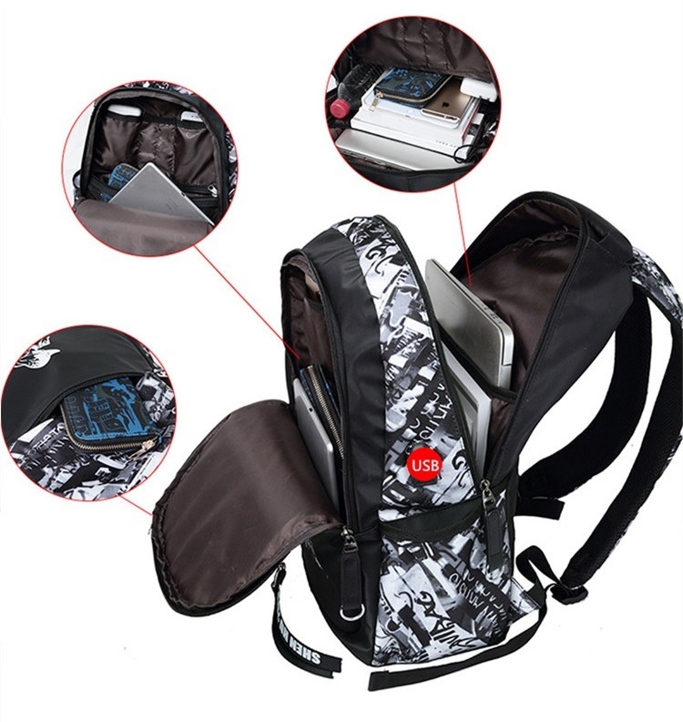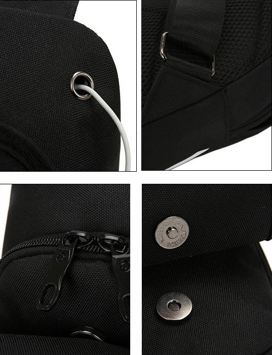 - Plecak został wyposażony w zewnetrzny port USB – wystarczy włożyć do plecaka swój powerbank i podłączyć go do gniazda USB, a port znajdujący się na zewnątrz plecaka będzie doskonałym źródłem do naładowania telefonu lub innych tego typu urządzeń,