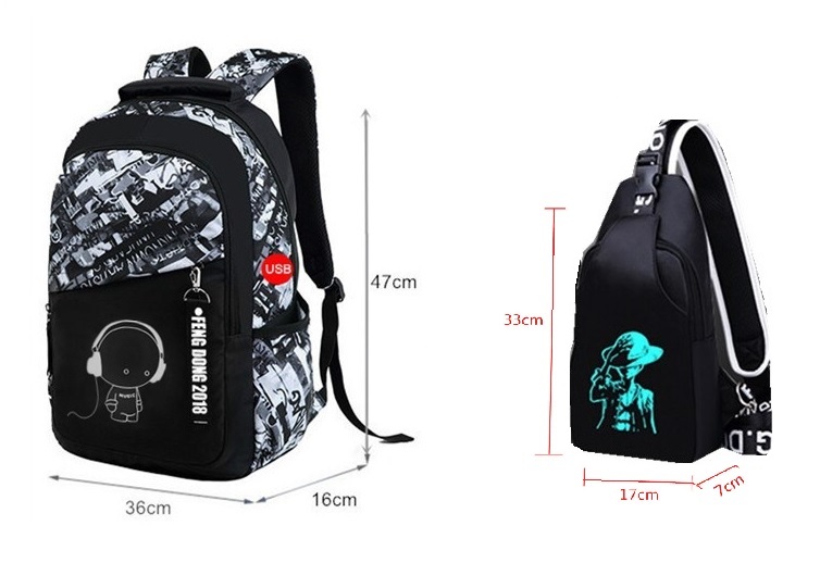 WODOODPORNY I ŚWIECĄCY W CIEMNOŚCI PLECAK Z ZEWNĘTRZNYM PORTEM USB + NERKA (PLECAK NA JEDNO RAMIĘ)