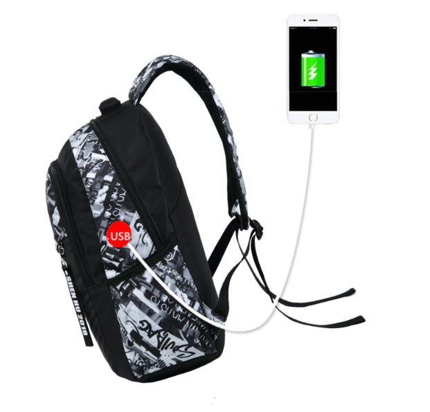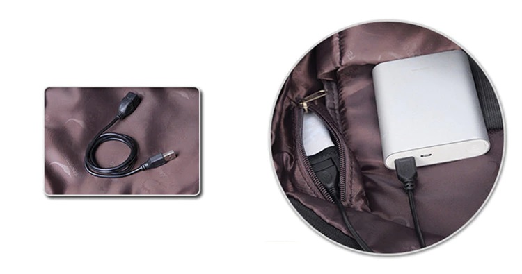 - Plecak został wyposażony w zewnetrzny port USB – wystarczy włożyć do plecaka powerbank i podłączyć go do gniazda USB, a port znajdujący się na zewnątrz plecaka będzie doskonałym źródłem do naładowania telefonu lub innych tego typu urządzeń.