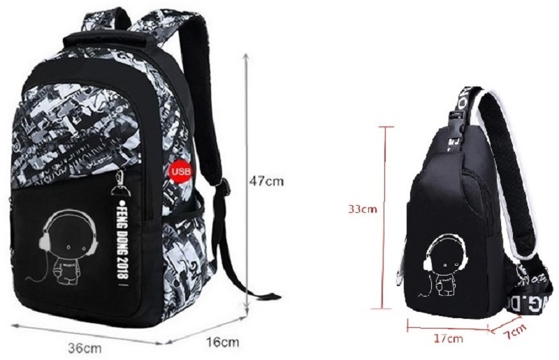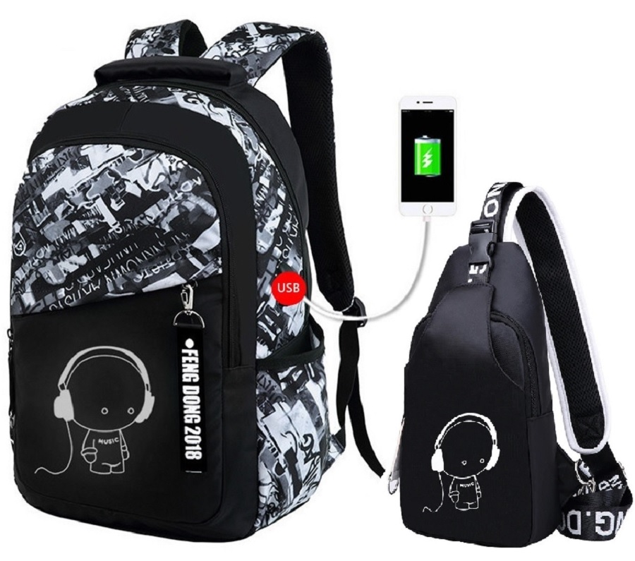 WODOODPORNY I ŚWIECĄCY W CIEMNOŚCI PLECAK Z ZEWNĘTRZNYM PORTEM USB + NERKA (PLECAK NA JEDNO RAMIĘ)