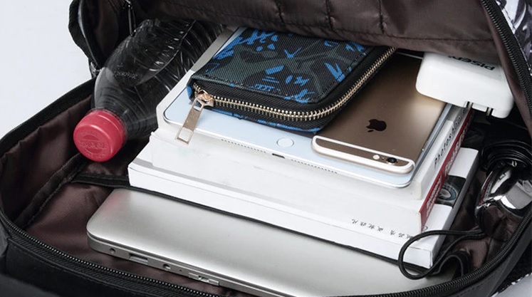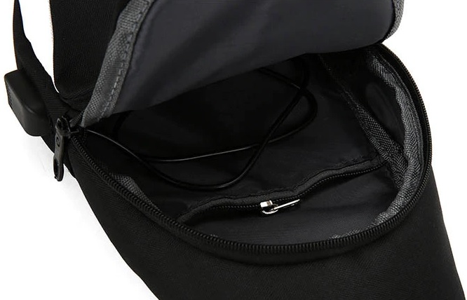 - Plecak został wyposażony w zewnetrzny port USB – wystarczy włożyć do plecaka swój powerbank i podłączyć go do gniazda USB, a port znajdujący się na zewnątrz plecaka będzie doskonałym źródłem do naładowania telefonu lub innych tego typu urządzeń,
