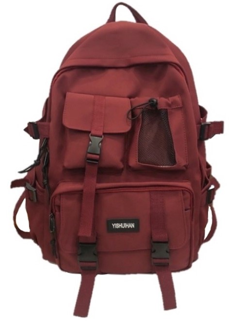 BORDOWY POJEMNY PLECAK SZKOLNY TORNISTER WIELOKIESZENIOWY NA KLAMRY