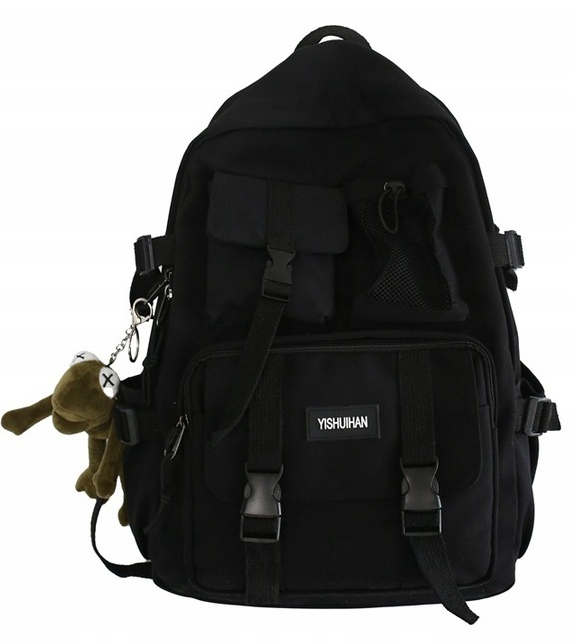 POJEMNY PLECAK SZKOLNY WIELOKIESZENIOWY KLAMRA CZARNY D I 9.2