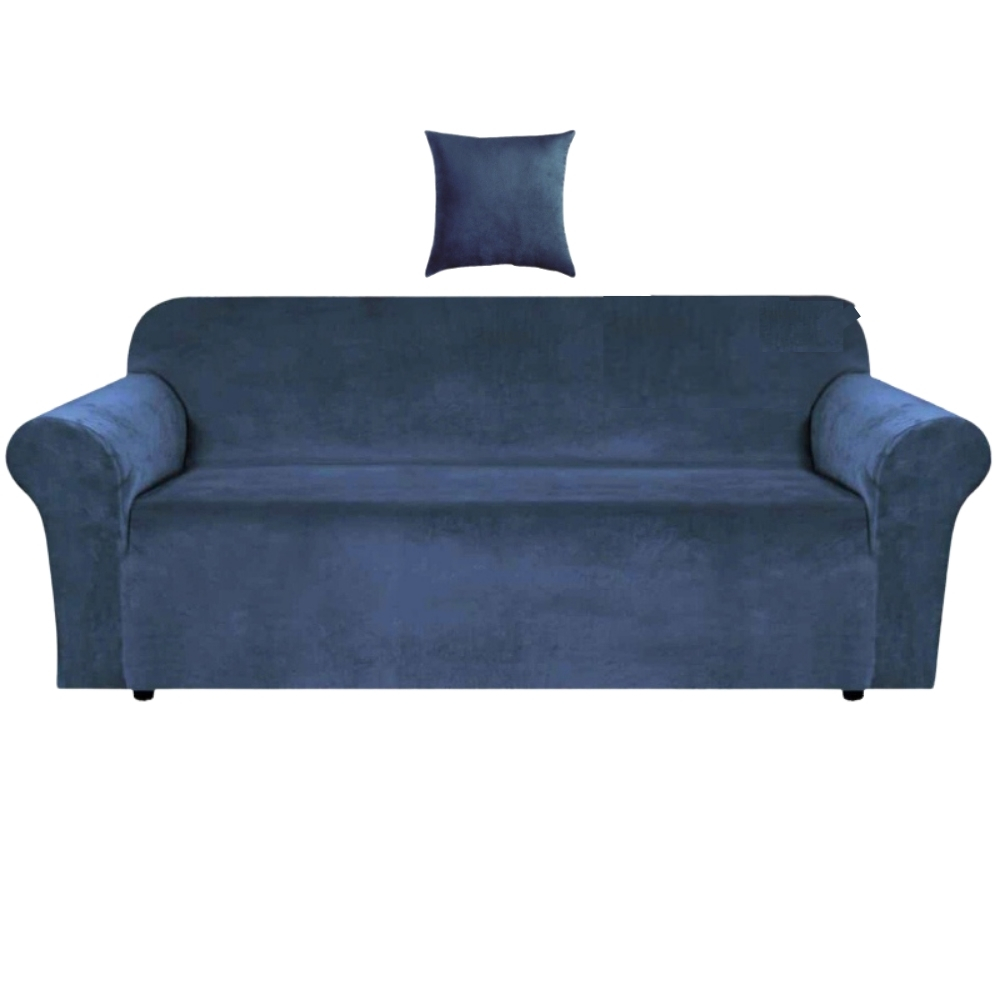 POKROWIEC NA KANAPĘ SOFĘ NAROŻNIK ELASTYCZNY WELUR PREMIUM AKSAMIT 190-230 CM 3OS GRANATOWY