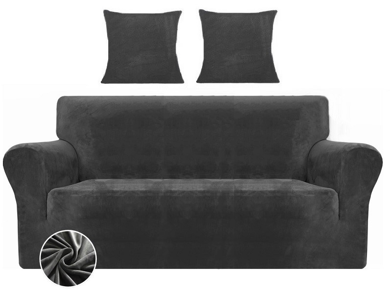 POKROWIEC NA SOFĘ KANAPĘ ELASTYCZNY WELUR 190-230 CM CIEMNY SZARY D II 2.3 b