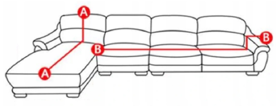 Proszę zmierzyć swoją sofę/fotel wraz z podłokietnikami zgodnie z czerwoną linią od punktu A do punktu A, a następnie wybrać właściwy rozmiar.