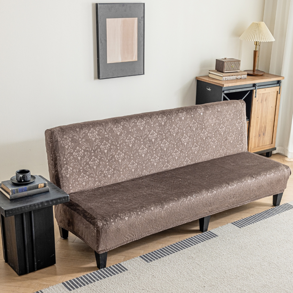 POKROWIEC NA WERSALKĘ SOFĘ WELUR TŁOCZONY ORNAMENT PREMIUM BRĄZOWY O WYMIARACH 190-210 CM